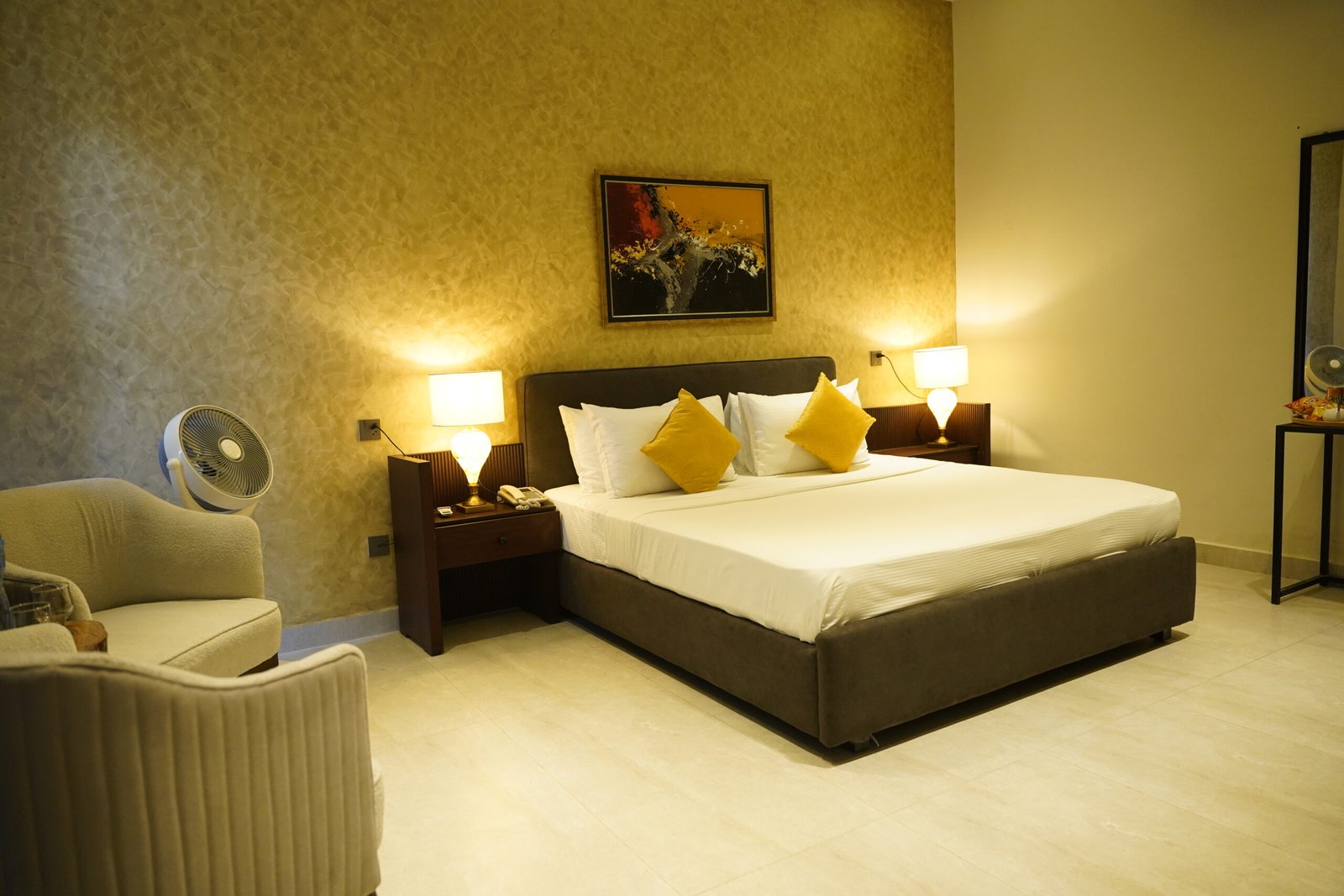 Step into a world of elegant interiors, where contemporary design meets timeless charm. Each suite features a separate living area, plush bedding, and state-of-the-art technology, catering to both relaxation and business needs. Enjoy high-speed Wi-Fi, a dedicated work desk, and premium entertainment systems, making it perfect for corporate travelers who demand efficiency without compromising on comfort.